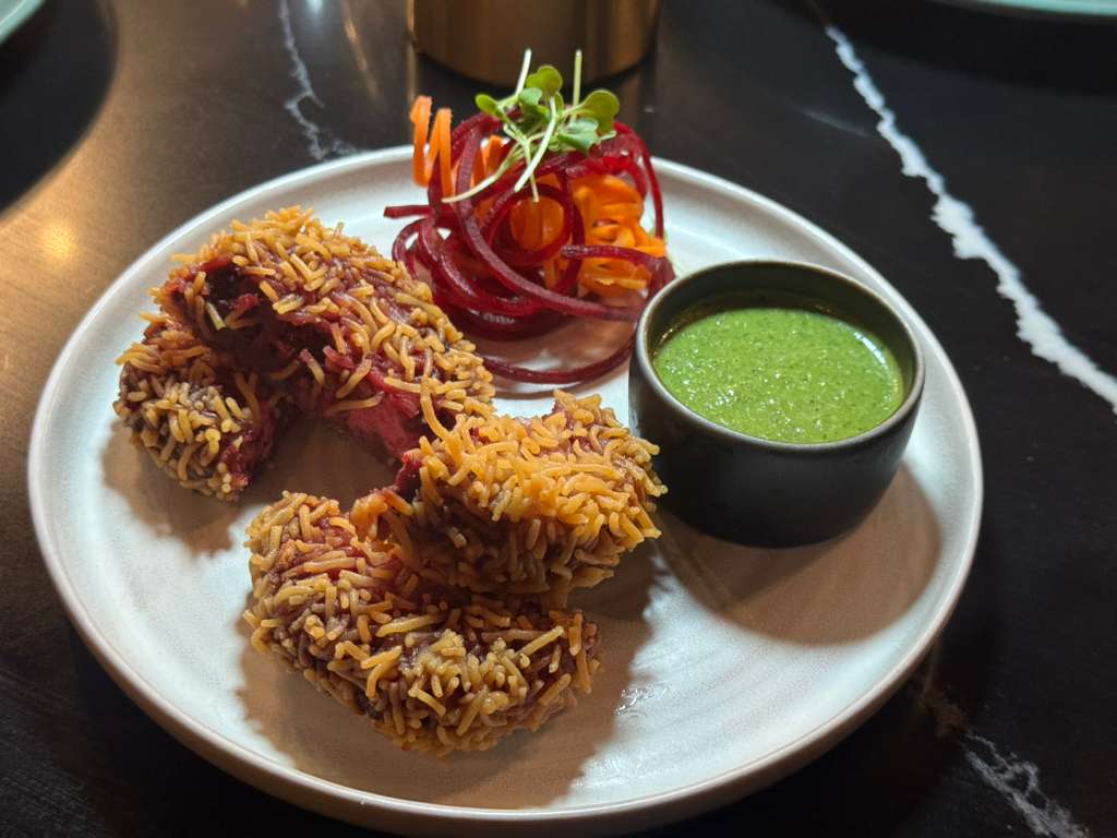 Crispy pan-seared patties made with beetroot, potatoes, and aromatic spices, served with a hint of tangy chutney.