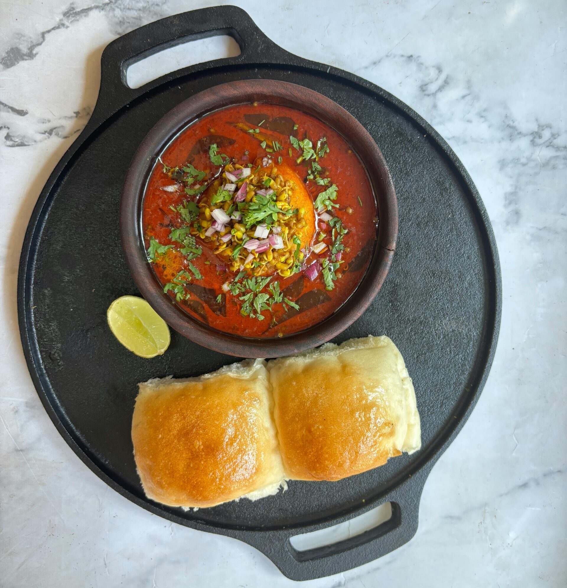 A hearty Maharashtrian street favorite — sprouted lentils simmered in a spicy, flavorful curry, served with toasted pav (bread rolls). Earthy, bold, and comfortingly authentic.